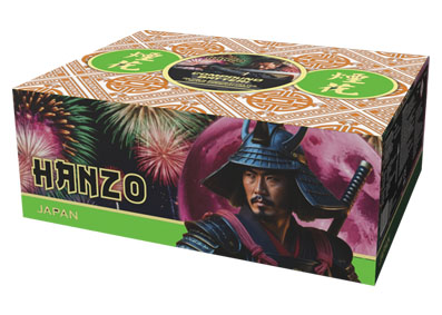 150 skud, 20 mm.Elegant batteri med et hav af flerfarvede haler efterfulgt af serier af guld til grøn og rød med farveskift.