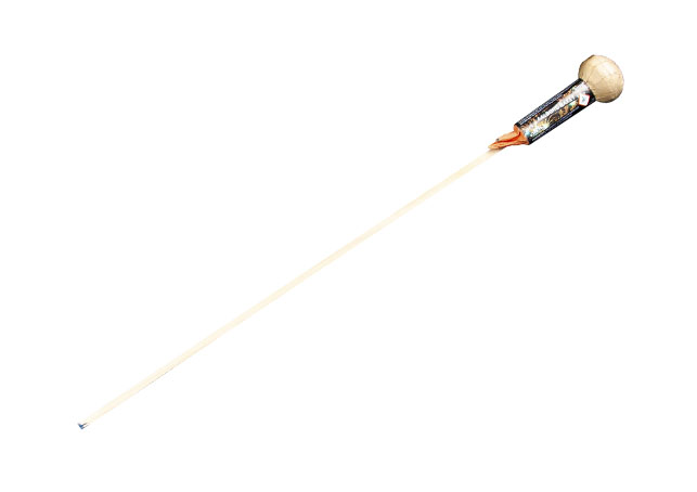 2.5”, 70 g, kugleraket. Farverig bombe med blinkere.