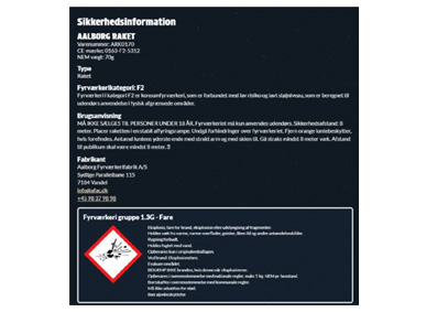 På denne hjemmeside sælges Fyrværkeri. Det er ulovligt at sælge fyrværkeri til unge under 18 år.